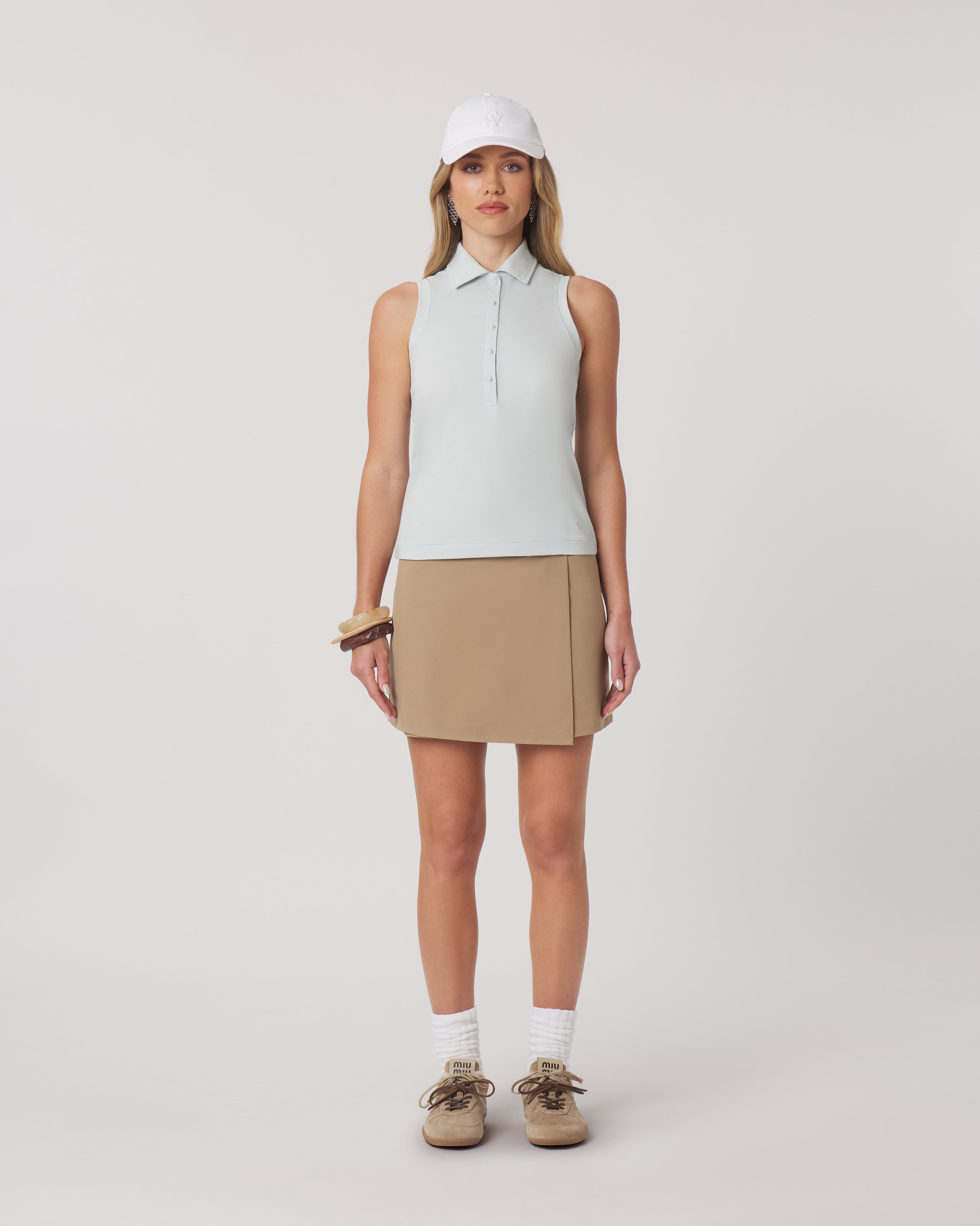 The Capri Wrap Skirt is designed to move easily through warm days on and off the course. Crafted from a lightweight technical fabric with a cool-touch feel, it offers breathable comfort and quick-dry performance without sacrificing structure.