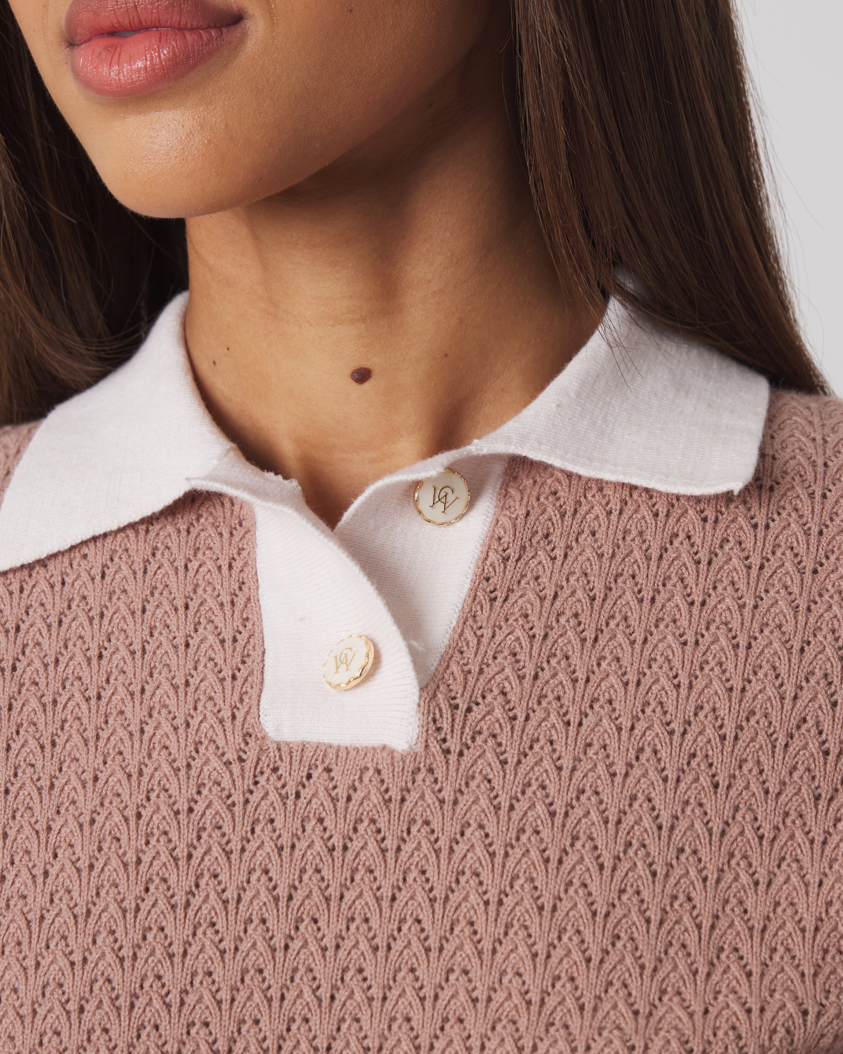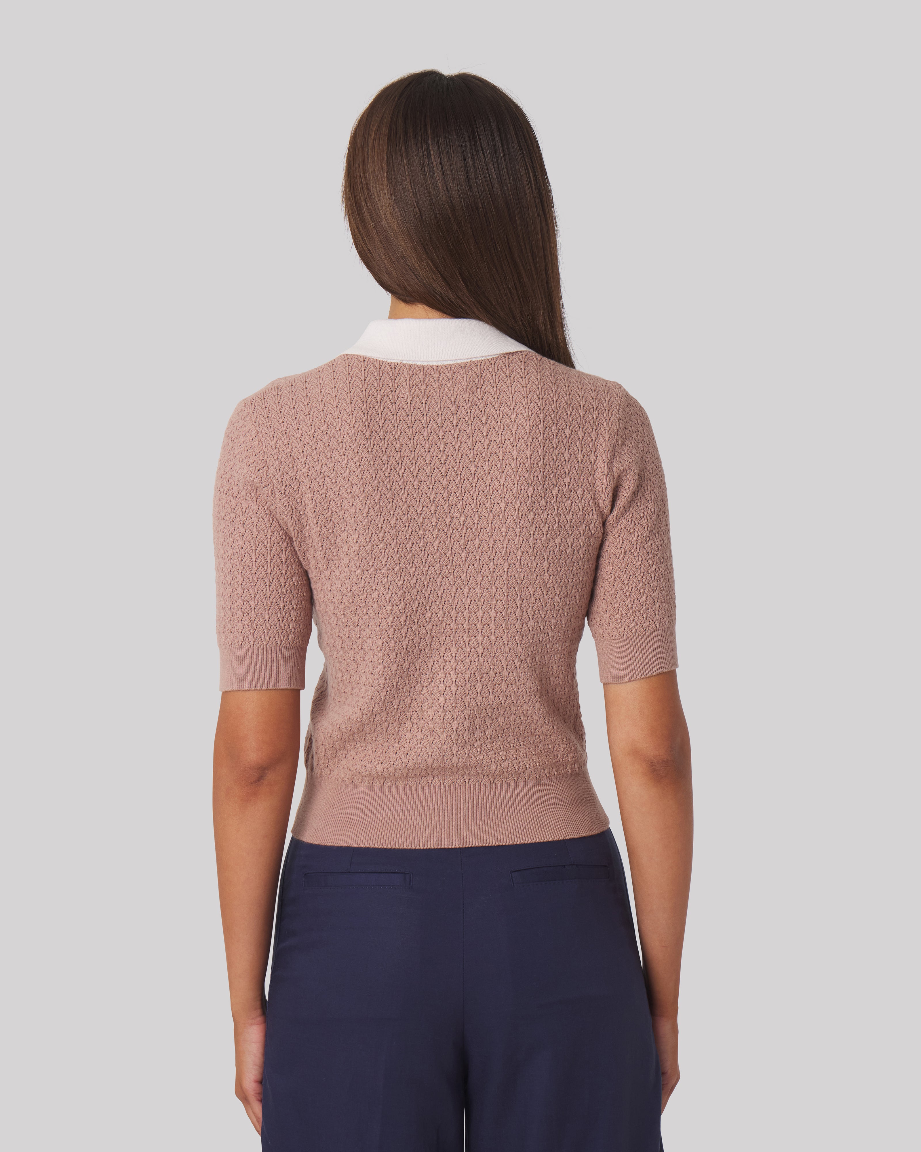 - Fully fashioned sweater knit with true linked seams