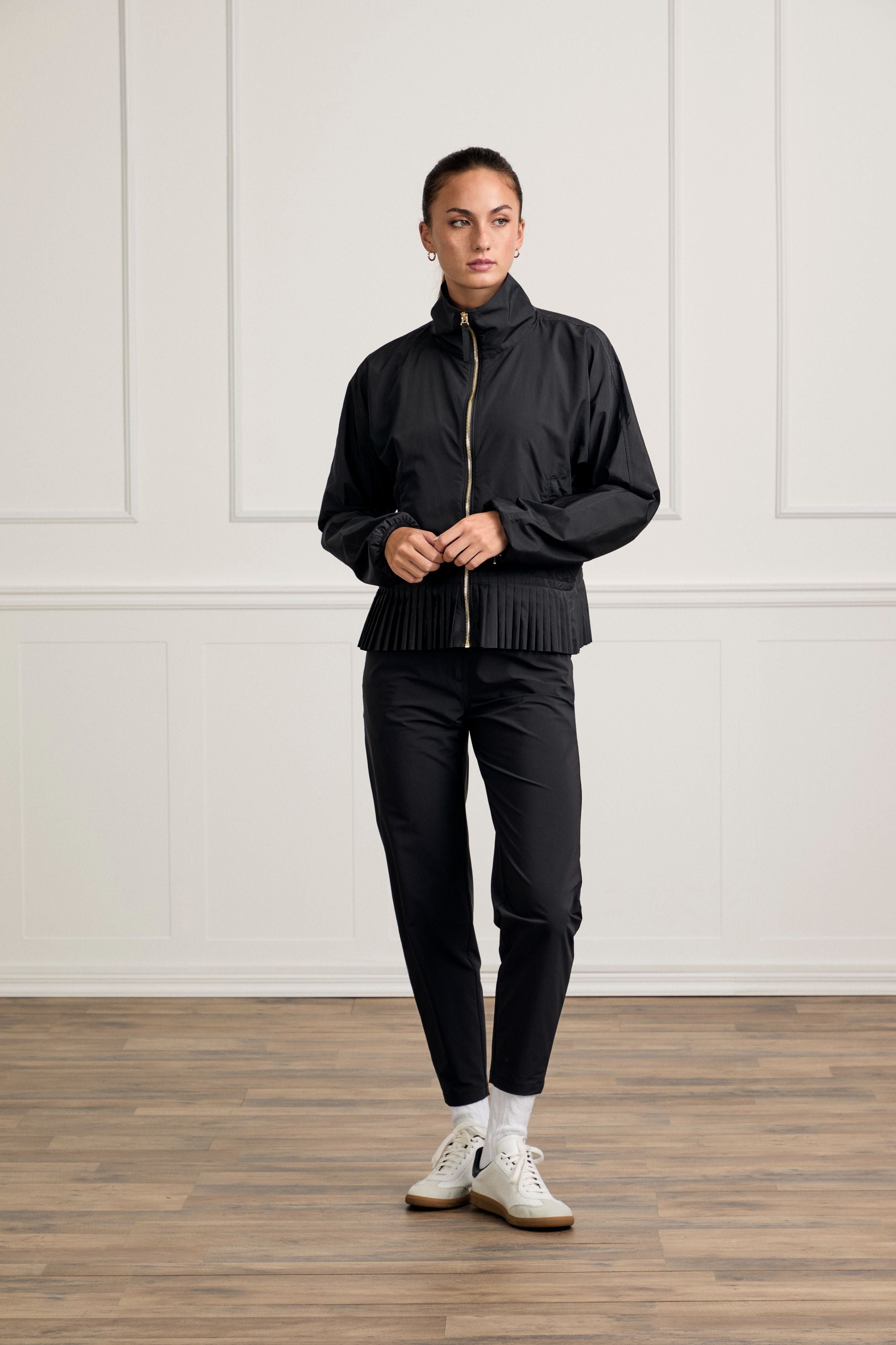 The Kendall Jacket is a high-fashion outerwear piece that blends elevated style with functional design. Crafted with a lightweight, breathable, and water-repellent shell and finished with a technical lining for added comfort and performance. A tailored cut allows for ease of movement, while soft elasticated cuffs offer a clean, modern edge. Complete with two discreet stash pockets, the Kendall delivers polished utility in a sleek, versatile silhouette—ideal for refined layering on and off the course.