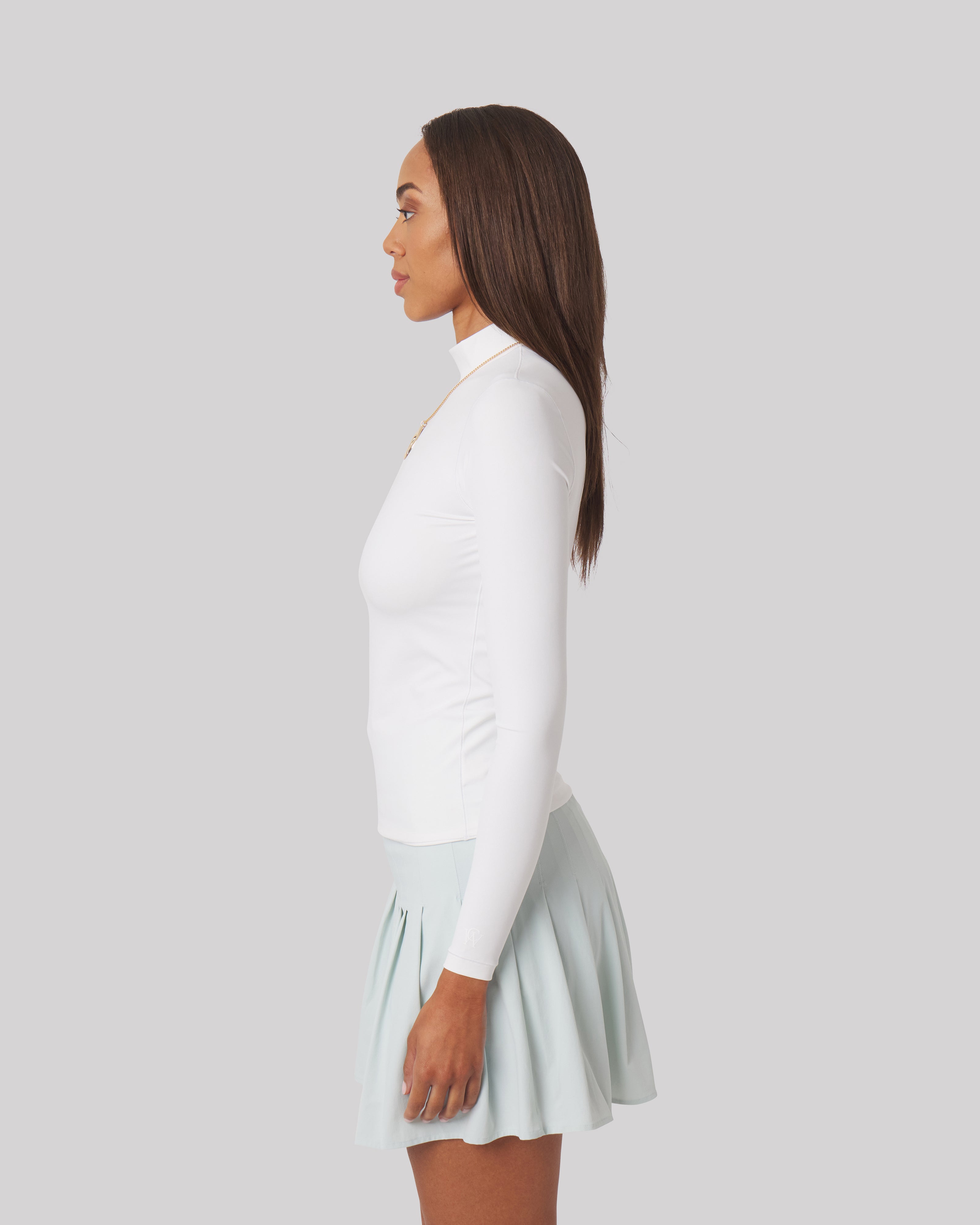 Featuring a sleek mock neck and built-in UPF protection, the Noelle is an ideal layering piece designed for both style and function on the course. Perfect for play or polished layering, it balances performance with refined comfort.