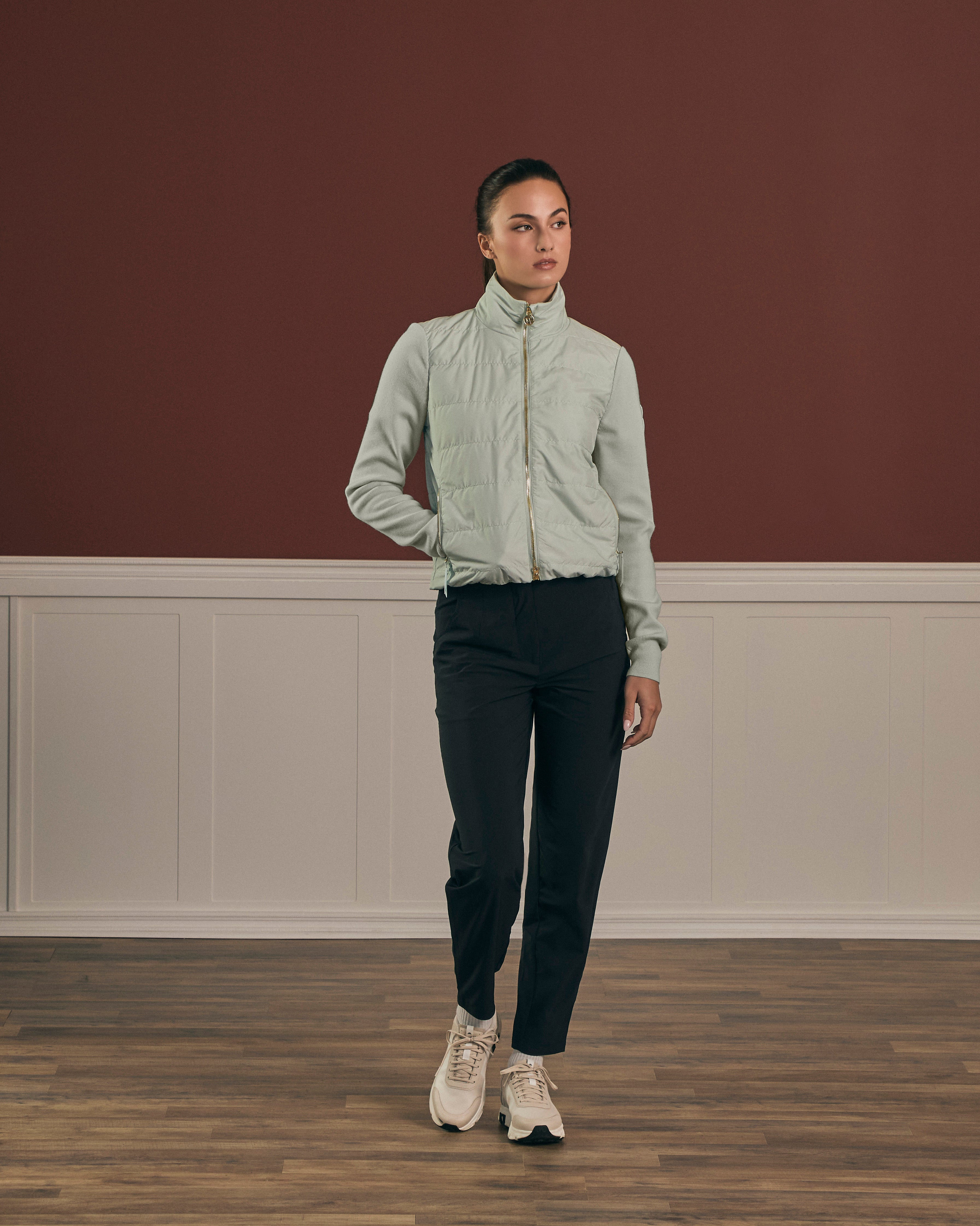 The Selena Jacket effortlessly blends sporty sophistication with technical performance. Designed for cool mornings and transitional weather, it features a water-repellent woven body to keep you protected from the elements, while the soft knit sleeves offer flexibility and a full range of motion.