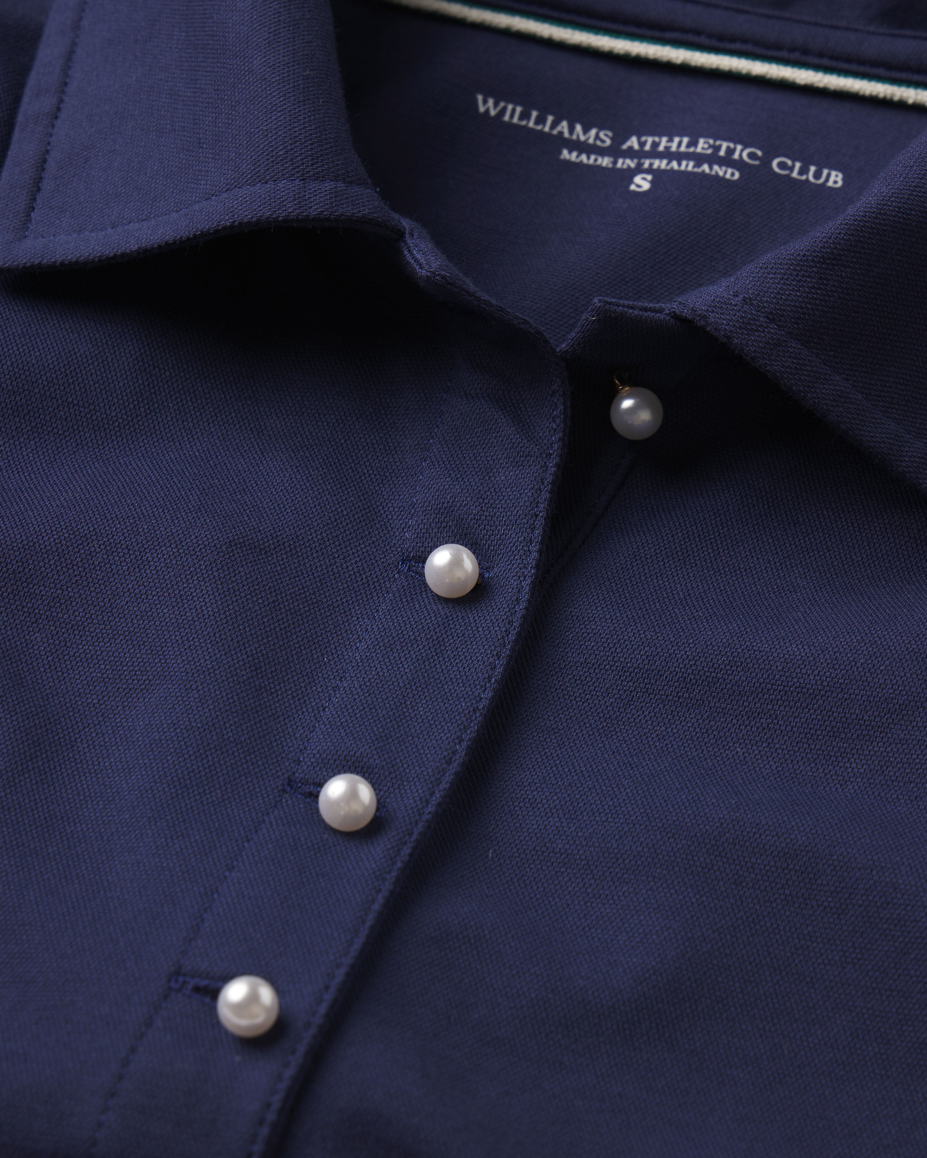 Introducing the Suki Polo, a contemporary reinterpretation of the classic golf polo. Departing from conventional polyester, we've engineered a retro-inspired pique fabric that features both wicking and antimicrobial finishes. The soft sheen and delicate pearl buttons add a touch of feminine elegance, elevating the Suki Polo into a new style realm without sacrificing functionality. Perfect for the modern golfer, this polo combines vintage charm with cutting-edge performance.