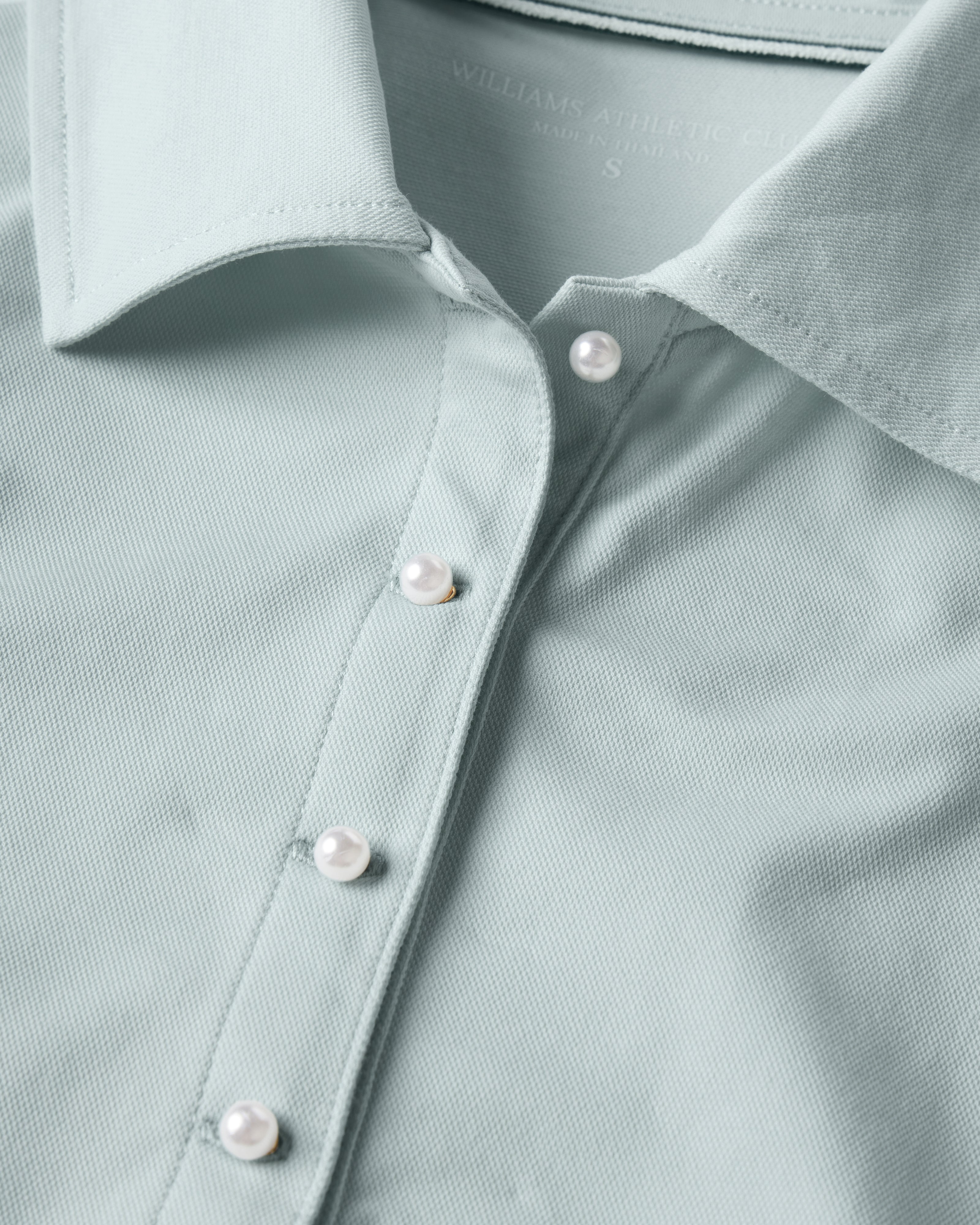 Introducing the Suki Polo, a contemporary reinterpretation of the classic golf polo. Departing from conventional polyester, we've engineered a retro-inspired pique fabric that features both wicking and antimicrobial finishes. The soft sheen and delicate pearl buttons add a touch of feminine elegance, elevating the Suki Polo into a new style realm without sacrificing functionality. Perfect for the modern golfer, this polo combines vintage charm with cutting-edge performance.