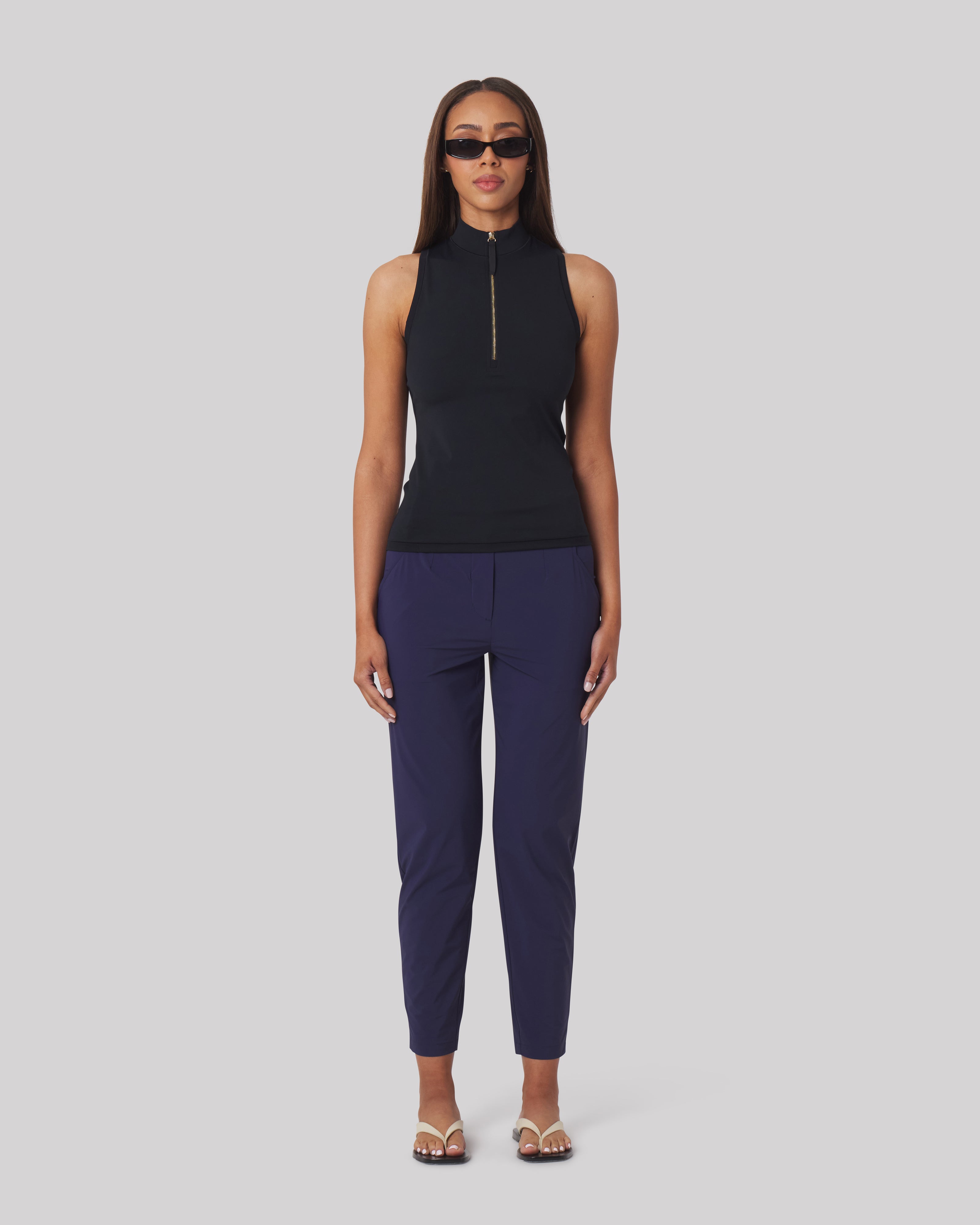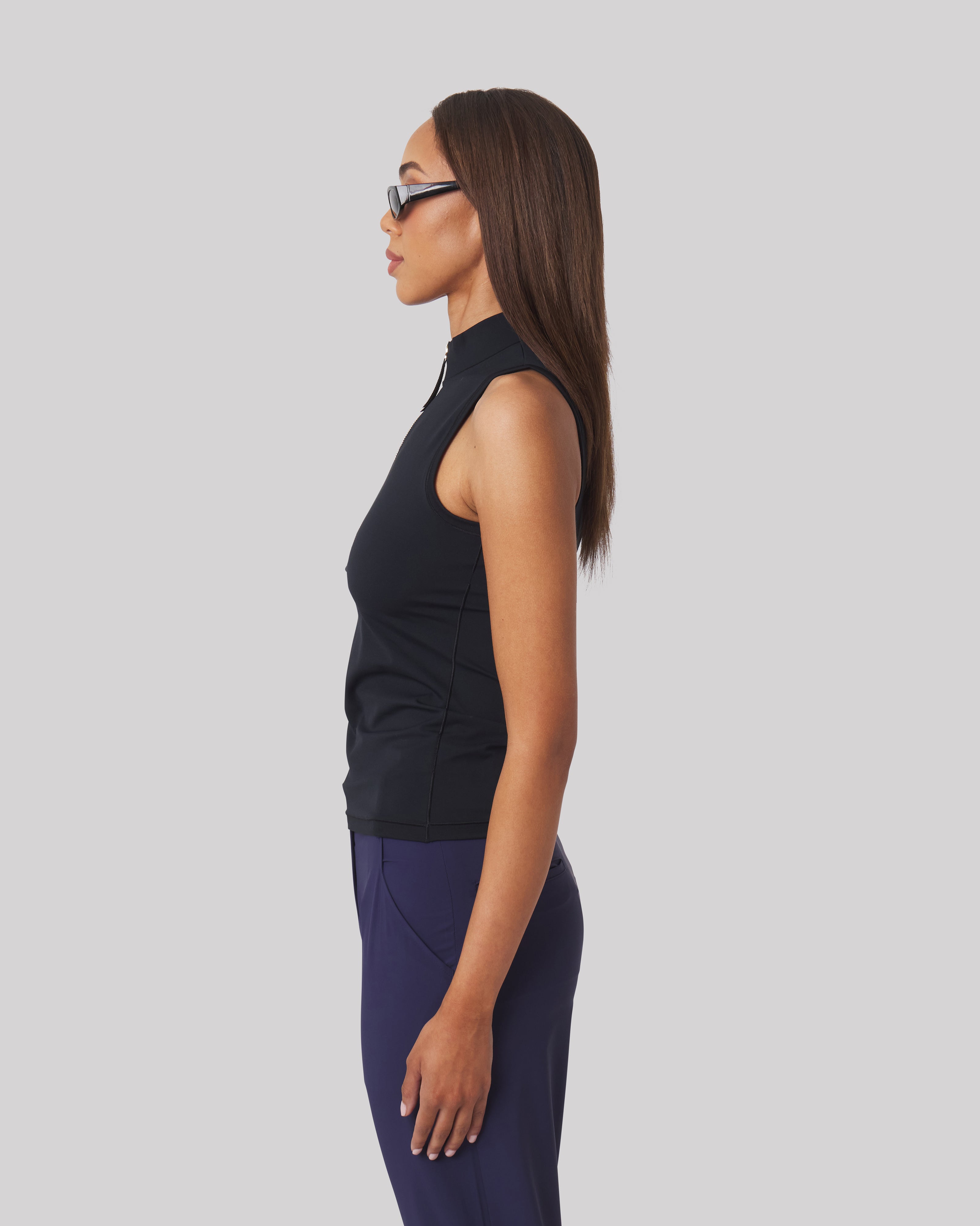 Designed with a refined stand collar, gold zipper detailing, and built-in UPF protection, the Tabitha brings elevated polish to any active or off-duty moment. A flattering, versatile staple that pairs effortlessly with trousers, skirts, or layered under outerwear.
